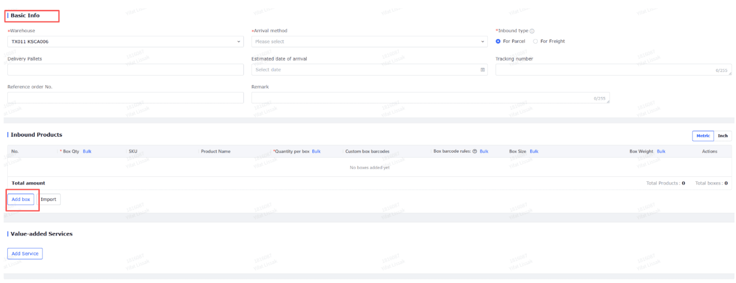 Arrival method: If it is express delivery to the warehouse,choose Pacel, if it is palletized, choose Pallet.If it is container, you can choose the corresponding one according to the size of the container. If you choose express delivery, you need to fill in the Tracking number. If it is palletized, you need to fill in the number of pallets in Delivery Pallets.
